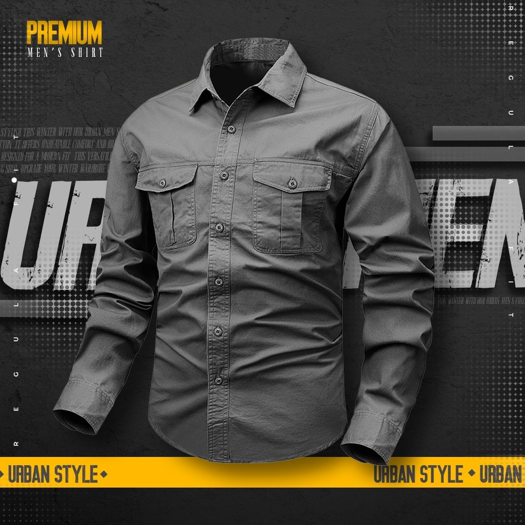 1 piece double pocket mens cotton shirt(Ash)